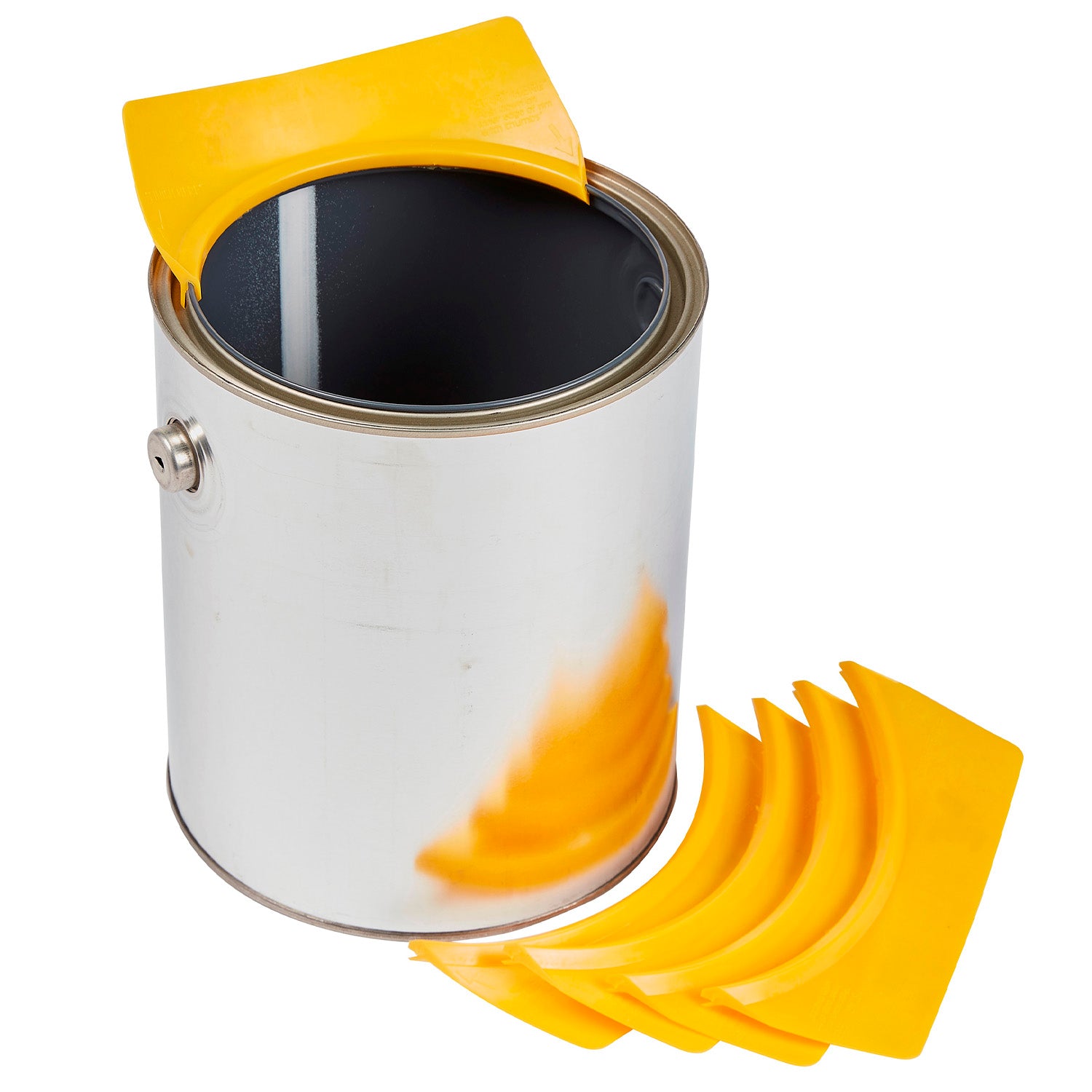 PAINT CAN POUR SPOUT - Avoid wasting paint by eliminating drips, splatter and spills. This all in one painting accessory also serves as a brush wiping tool and a brush rest. Simply snap the paint can spout onto the "inner" rim to control pouring for a clean and drip-free result.